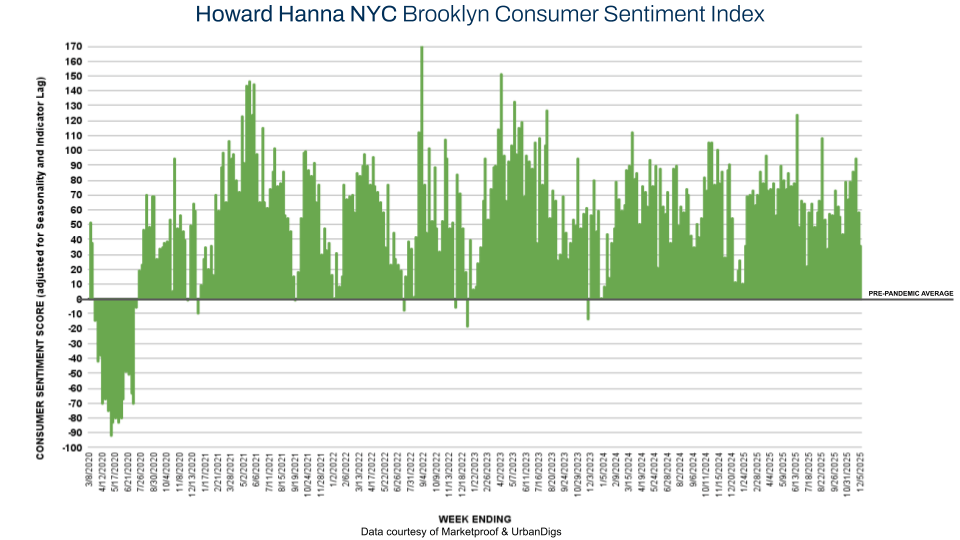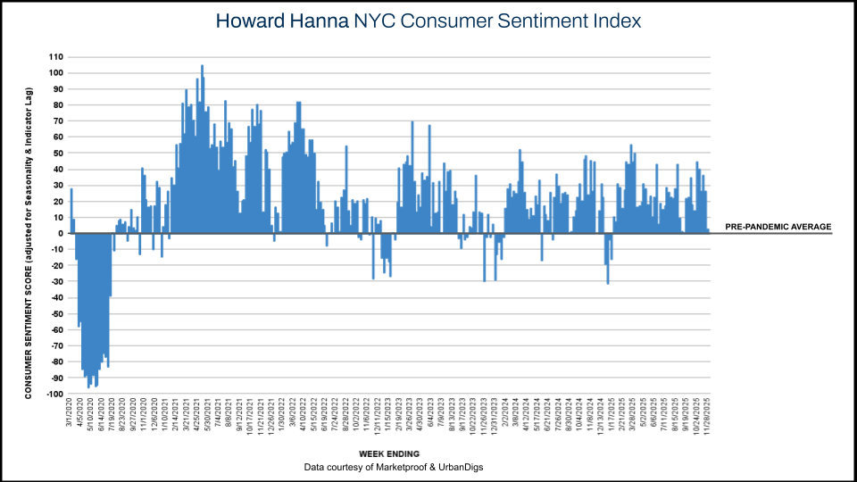 Buyer sentiment, however, remains soft — the Howard Hanna NYC Consumer Sentiment Index fell from 3 percent to -1 percent, reflecting the typical early-December cooldown as consumers shift into year-end mode. The market is settling into its quietest stretch of the calendar, with momentum likely remaining muted until January.